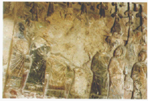 胡文和、胡文成:“在中国同时代的石窟寺中,像(千佛崖卧佛窟)这样较为完整表现涅槃经内容的变相,只有千佛崖这一例”。