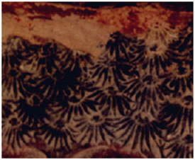 四川广元千佛崖卧佛窟石壁上的娑罗树枝叶