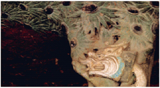 四川广元千佛崖卧佛窟立柱上的龙、娑罗树枝叶