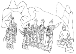 四川广元千佛崖卧佛窟浮雕局部“为母说法”