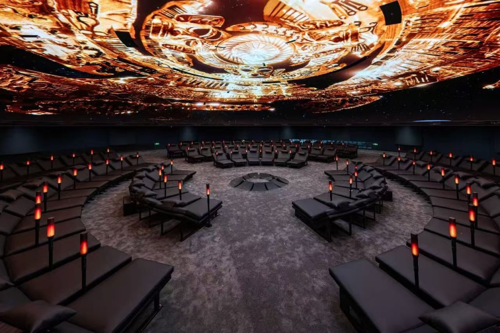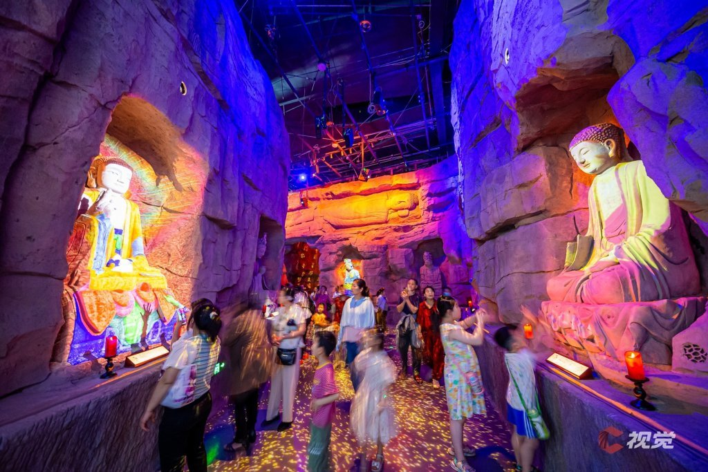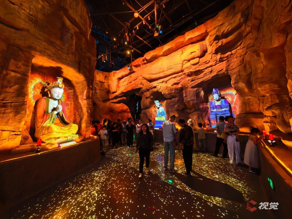 在敦煌莫高窟,为了保护壁画尽量缩短游客在洞窟内的时间,莫高窟数字展示中心通过球幕电影让游客得以360度无死角提前“逛”石窟。洞窟里看不真切的一些细节,在这里纤毫毕现。而这正是基于其前期制作上,便对典型洞窟进行了数字化采集、并利用高精度球幕CG技术进行渲染。