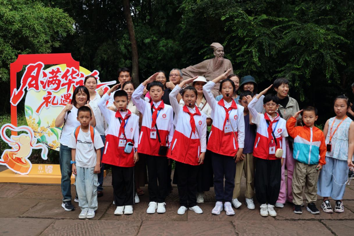 活动纷呈,带给游客多元体验。节日期间,三苏祠推出“明月此时家国同庆”和“月满华诞、礼遇东坡”系列特色文化活动。其中,“明月此时家国同庆”主题活动以开门仪式、苏祠红文化墙打卡、老照片换新、诗词擂台赛、苏祠寻宝等活动,吸引游客与东坡“共赏一轮明月”,共度诗意双节。“月满华诞、礼遇东坡”系列活动通过“记忆老照片焕新打卡”、“创客东坡小课题”、AI智能互动讲解赋能景区智慧服务等为游客带来深度文化体验,在趣味互动中感受传统文化魅力。