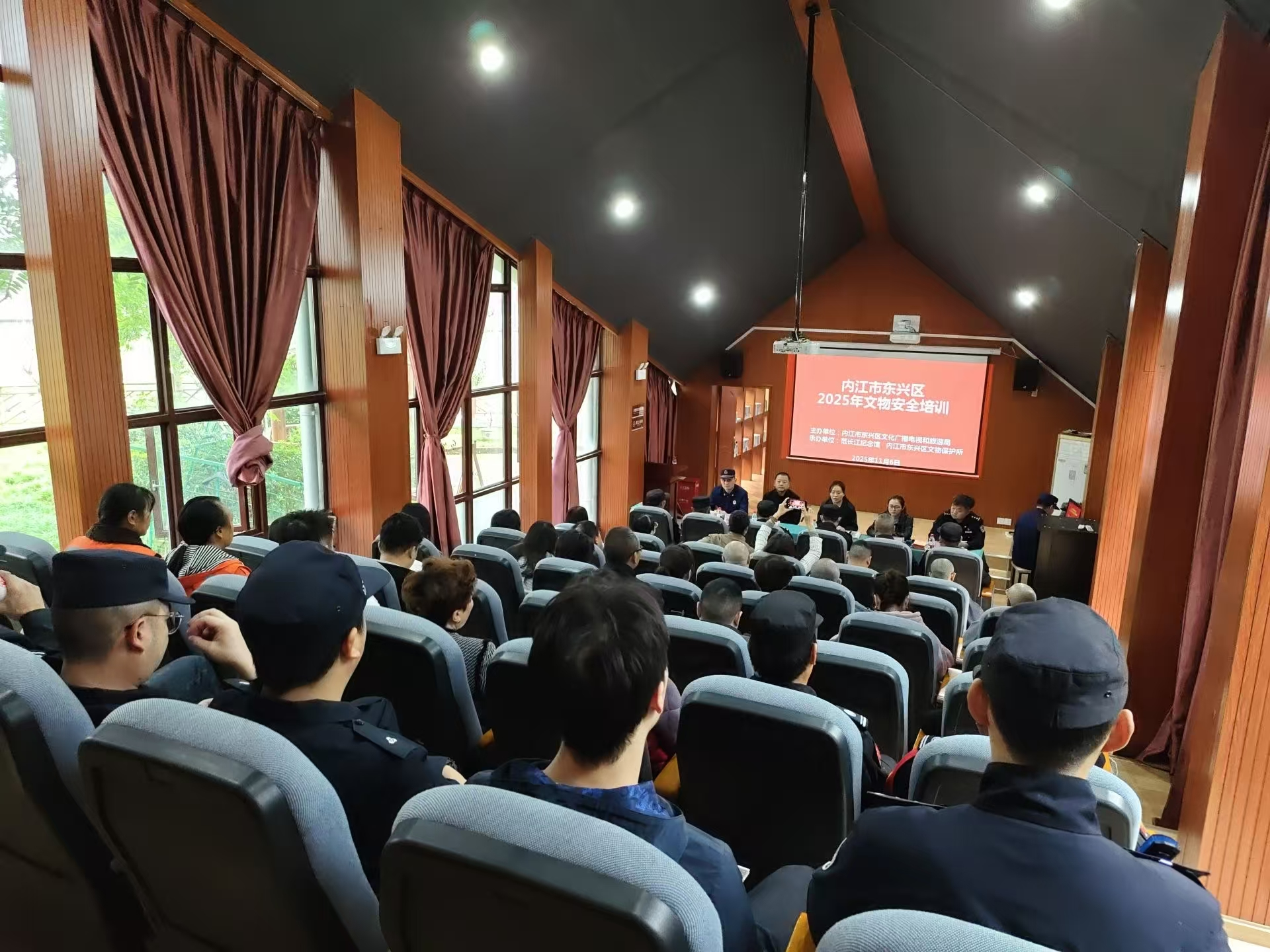 培训会上,东兴区文化广播电视和旅游局通报了近期全国文物安全事故典型案例,并对当前文物安全工作进行安排部署;消防救援大队专家结合文物建筑耐火等级低、火灾荷载大等特点,通过PPT演示和视频案例,深入讲解文物消防“四懂四会”知识;公安部门专家深入讲解了文物博物馆单位安全预防、突发事件应急处置及防暴恐器械使用相关知识。通过培训进一步丰富了参训人员文物安全防护知识。