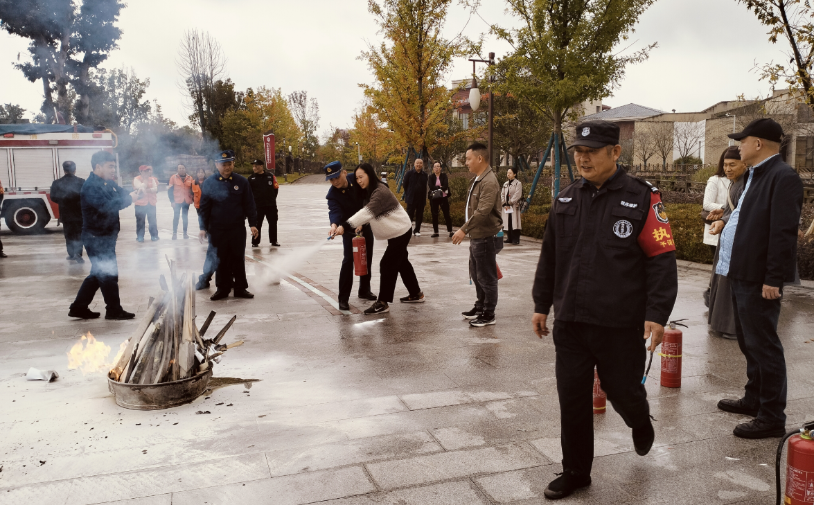 演练环节,参训人员分组练习灭火器“提、拔、握、压”四步操作法,学习消防水带连接、水枪精准喷射等技术,并针对古建筑内电气火灾、木质结构建筑火情等场景开展模拟处置演练,进一步提升了参训人员应急处突能力。