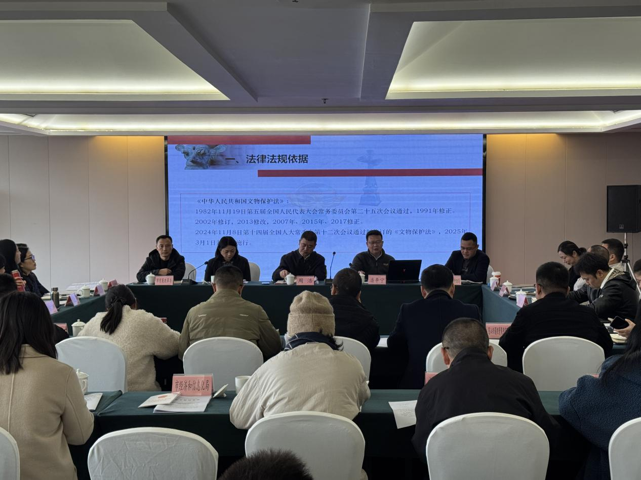 会议听取了眉山天府新区、各县(区)关于2025年度文物安全、地下考古、文物保护和四普第三阶段等工作情况汇报,市发展改革委、市规划自然资源局通报了地下文物安全保障等相关工作情况。会议邀请了四川省文物考古研究院就新修订《中华人民共和国文物保护法》下四川省基本建设工程中的文物保护工作做专题培训。