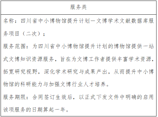 二、项目名称:四川省中小博物馆提升计划-文博学术文献数据库服务项目(二次)