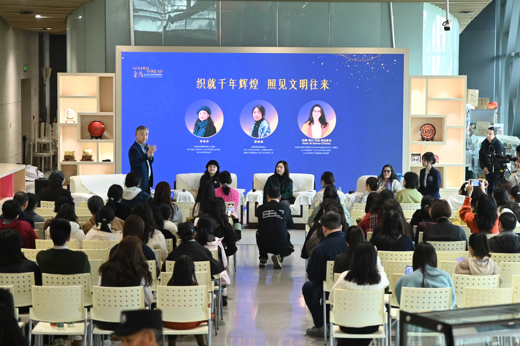11月30日,成都博物馆年度压轴大展“金线——从北非到东亚的黄金服饰风尚”正式向公众开放。当天下午,一场以“织就千年辉煌,照见文明往来”为主题的跨界学术沙龙在馆内举行。中国丝绸博物馆馆长季晓芬、成都博物馆副馆长黄晓枫、法国凯布朗利博物馆策展人哈娜·阿尔·巴纳-奇迪亚克三位中外学者,围绕金线的起源、传播与当代意义展开精彩对话。(川观新闻)