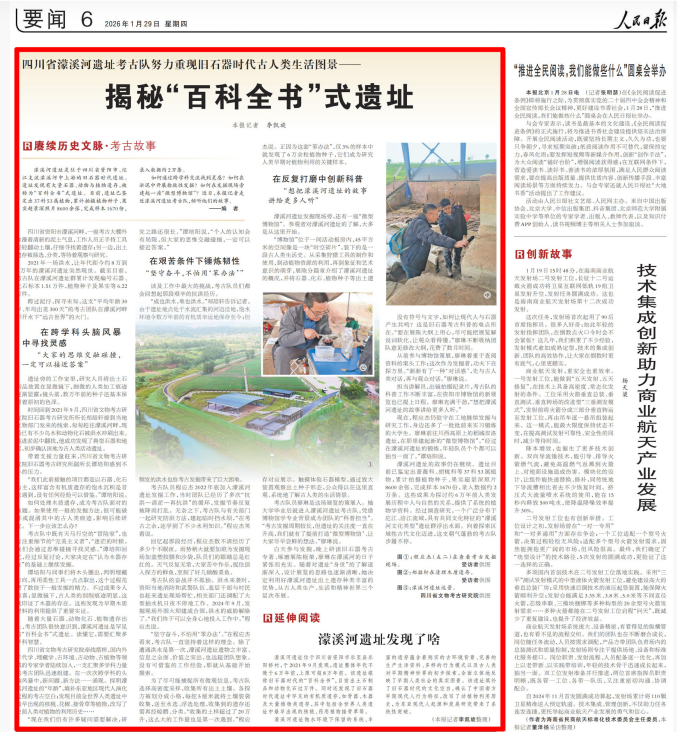 人民日报发表《四川省濛溪河遗址考古队努力重现旧石器时代古人类生活图景 揭秘“百科全书”式遗址》
