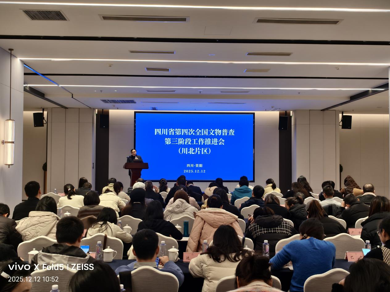 12月11日至16日,四川省第四次全国文物普查第三阶段工作推进会分川北、川南两个片区在资阳、眉山召开。全省21个市(州)、183个县(市、区)普查业务骨干180余人参加会议,省文物局文物古迹处(世界文化遗产处)处长、省四普办业务指导组组长贺晓东出席会议,副处长杨云主持会议。